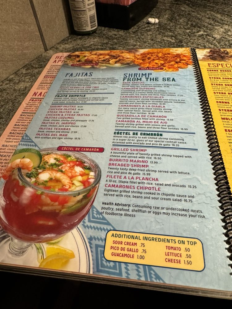 Notable highlights include the Super Jaripeo, a generous serving of grilled steak, chicken, and shrimp, all perfectly seasoned and accompanied by fresh vegetables. For seafood enthusiasts, the Seafood Filete showcases succulent scallops and shrimp draped in cheese, making each bite an indulgent experience.